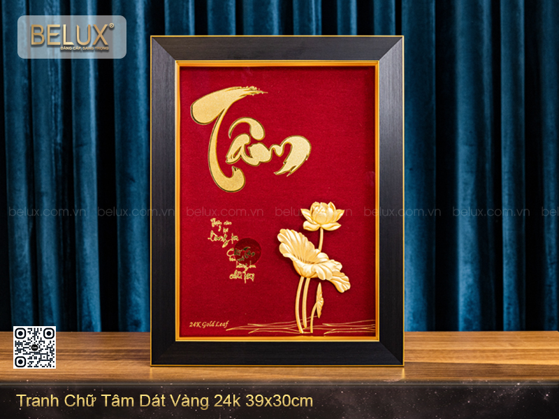 Khi được dát vàng 24k, chữ “Tâm” càng thêm phần trân quý, tượng trưng cho tấm lòng cao đẹp, tâm hồn trong sáng và giá trị sống bền lâu. Treo bức tranh này trong không gian sống hay làm việc giúp giữ gìn sự tĩnh lặng trong tâm trí, truyền cảm hứng hướng thiện và nhắc nhở bản thân giữ vững giá trị cốt lõi trong mọi hoàn cảnh.