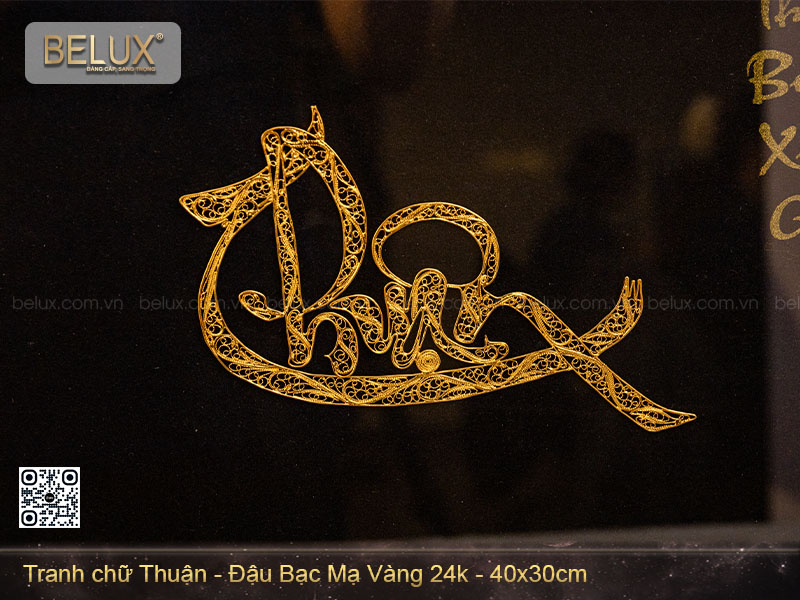 • Tên sản phẩm: Tranh chữ Thuận - đậu bạc mạ vàng 24k