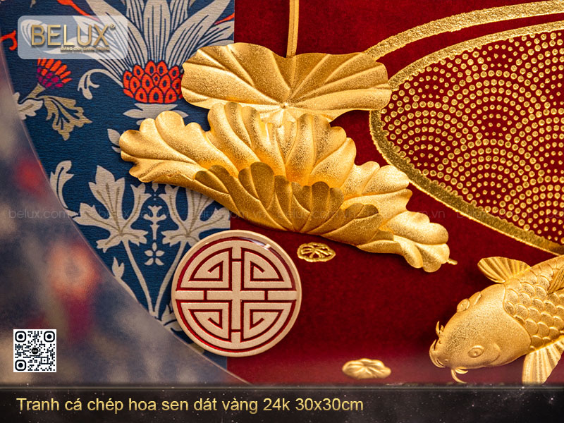 • Tên sản phẩm:  Tranh Sen Ngư Đại Cát dát vàng 24k kt 20x20cm